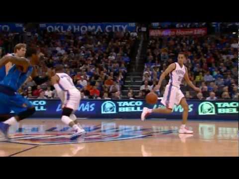 Check out this crazy pass from Thunder point guard Russell Westbrook who comes up with the steal and bounces it through his legs without looking to Kevin Martin for the fastbreak slam dunk!