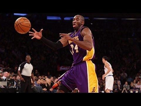 Check out these two great plays from Kobe Bryant as he attempted to lead a Lakers 4th quarter comeback against the Knicks, hitting the incredible baseline three pointer as the shot clock expired and connecting on an amazing hook shot, looking like Lakers legend Kareem Abdul-Jabar!